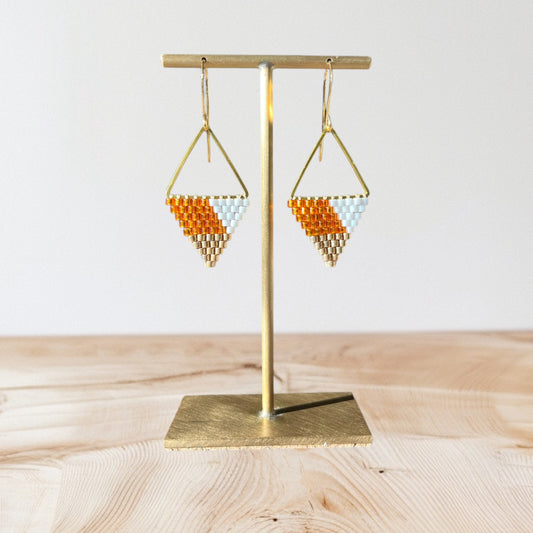 Clay, Gold coloured, Sparkling taupe and white beaded earrings